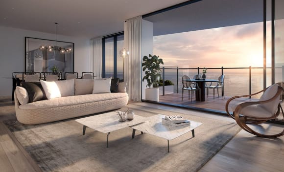 Bela by Mosaic have been designed to pay homage to the famous beach shacks of the 1950s, creating a chic, yet nostalgic vibe throughout the property. These apartments are unique, luxury beach homes which boast timeless design, and epitomise 6-star resort-style luxury. Each home features high ceilings and towering windows, giving a sense of opulence and grandeur, as well as encouraging plenty of natural light and airflow. The beachside location means the tower looks out onto the northeast and southeastern coastline, for residents to take in the spectacular landscape from every apartment and communal space, year-round. On-site amenity includes a resort pool, spa, sauna, gymnasium, bicycle and surfboard storage, as well as an executive club on Level 25 which hosts a wine cellar, private dining room, kitchen, library, lounge and media room.