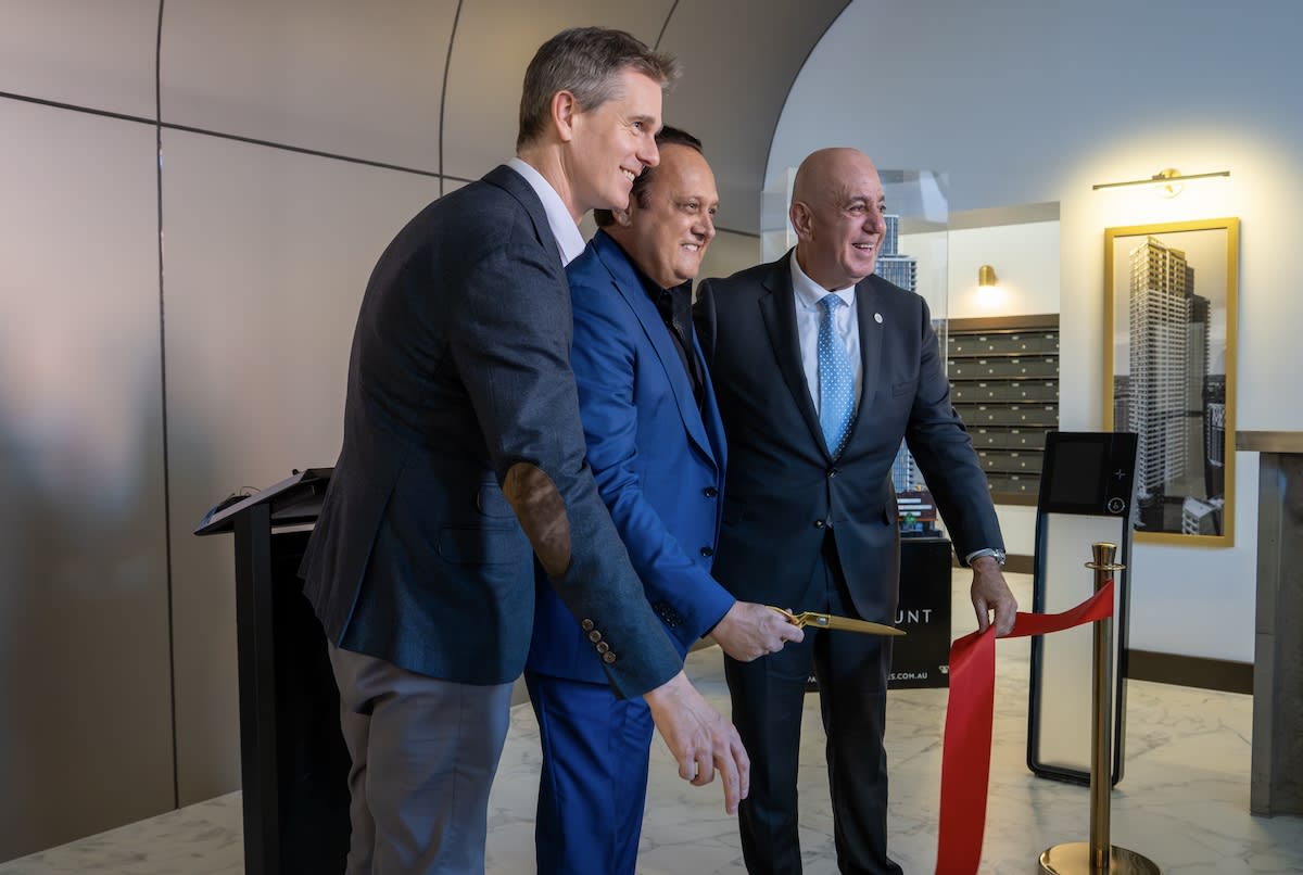 ALAND Founder and Owner Andrew Hrsto, along with Dr Andrew Charlton and Parramatta Lord Major Cr Pierre Esber, cut the ribbon on Paramount on Parkes, the latest in a long line of new apartment developments ALAND has delivered over the last two decades.