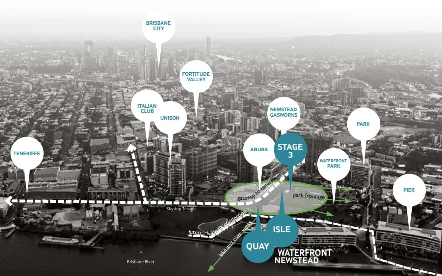 "Sky Stage 3 offers inner city living at its best, being located across the road from the services and retail of Gasworks shopping centre, within 200m of the Riverwalk, directly on Skyring Terrace which is serviced by the CityGlider bus services and on the Waterfront Park," Urbis noted in the submission documents.