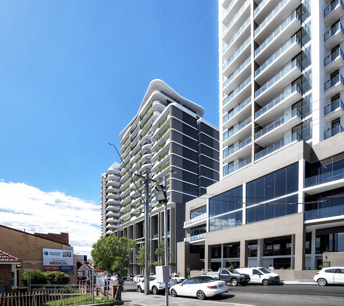 Located on the corner of Crown Street and Gladstone Avenue, the towers will contain a total of 262 apartments, above 1200 sqm of retail space with seven separate tenancies.