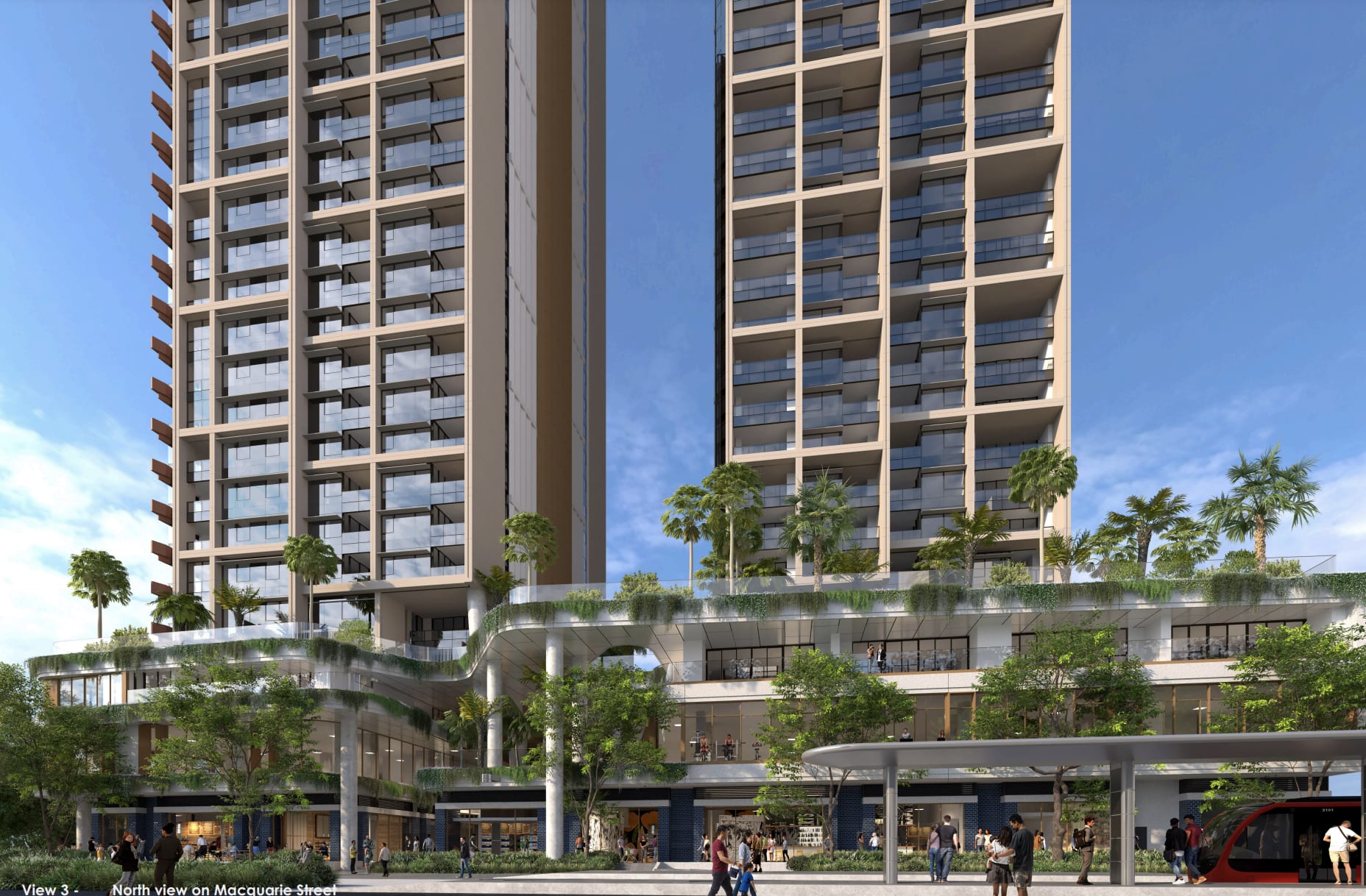Pitched to cater toward Parramatta's growing population, 600 apartments will be constructed across the two 45-level towers, as well as shops and workplaces.