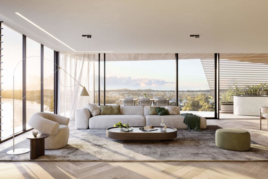 Eighteen on Park offers seamless integration of indoor and outdoor spaces, enhanced by 2.7-metre ceilings that flood the interiors with natural light and river breezes, while the kitchens, which meet the main living and dining area and balcony, feature state-of-the-art Miele appliances, stone benchtops, and a butler's pantry.