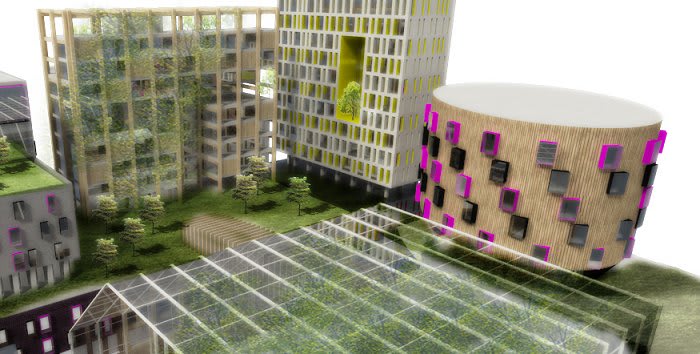 Whereas my last renders for integrated vertical farming were more about exploring a notion, Brunswick Village is certainly a more viable commercial concept. Regardless of whether the site is owned by state, private of institutional interests the concept could proceed given the acquisition of a minimal number of adjoining sites.