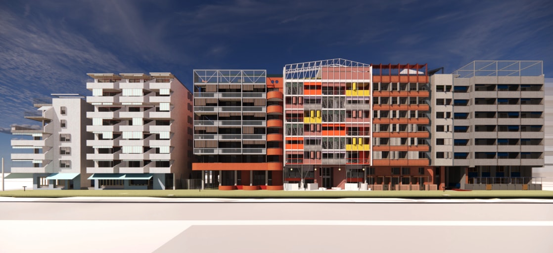 Hayball, Neeson, Murcutt + Neille, Kennedy Nolan, WOWOWA, and LIAN are the architecture and design studios have put together plans for a building each. They will each have eight levels and between 53 and 58 apartments in each.