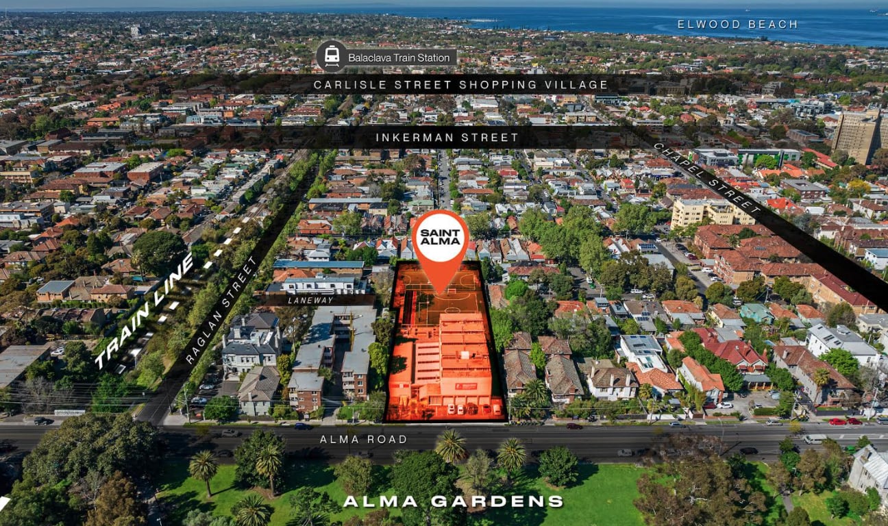 The site is directly opposite Alma Park and has easy access to all modes of public transport and major arterial roads including Windsor and Balaclava Train Stations and Dandenong and St Kilda Road trams.