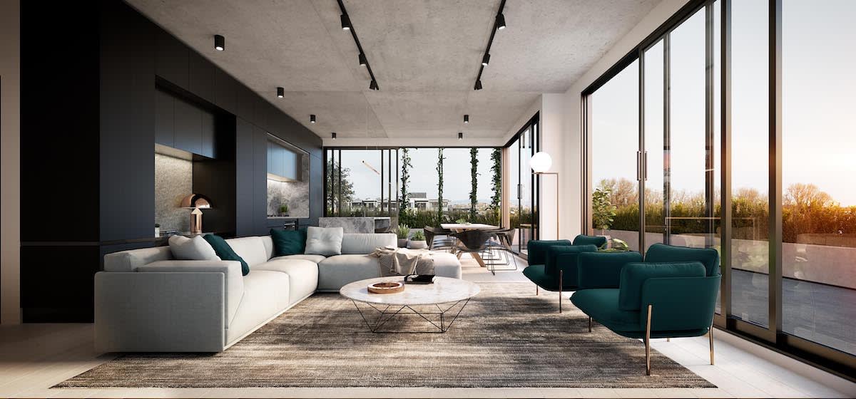 The generous two and three-bedroom apartments have been meticulously composed to encourage a balance between ‘live, work and play’, with a rich pallet of concrete, timber, stone, and glass used throughout.