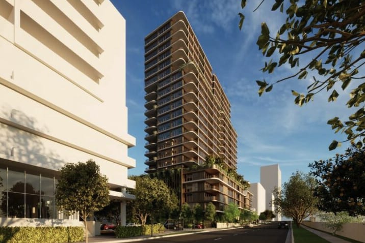 The towers will sit on the 5,485 sqm site directly across the road from the City Botanic Gardens from the Alice Street frontage. They will include a childcare centre, retail and food and beverage spaces, and communal open space facilities like swimming pools, an outdoor gym and play space on the level five podium level before it gives way to the main tower structure.